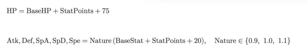 Stat=Naturaleza×(Base Stat×SP+20)
